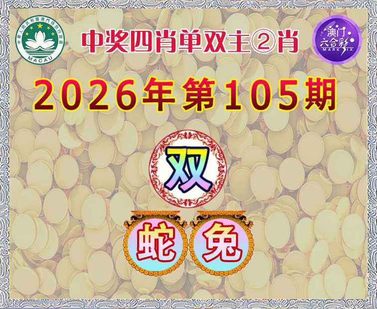 105期: 中奖四肖 👉单双主②肖👉【双-蛇兔】开:00准