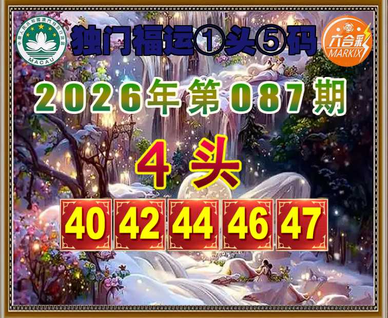 087期: 独门福运 ☘️①头⑤码☘️【4头主:40.42.44.46.47】开:26
