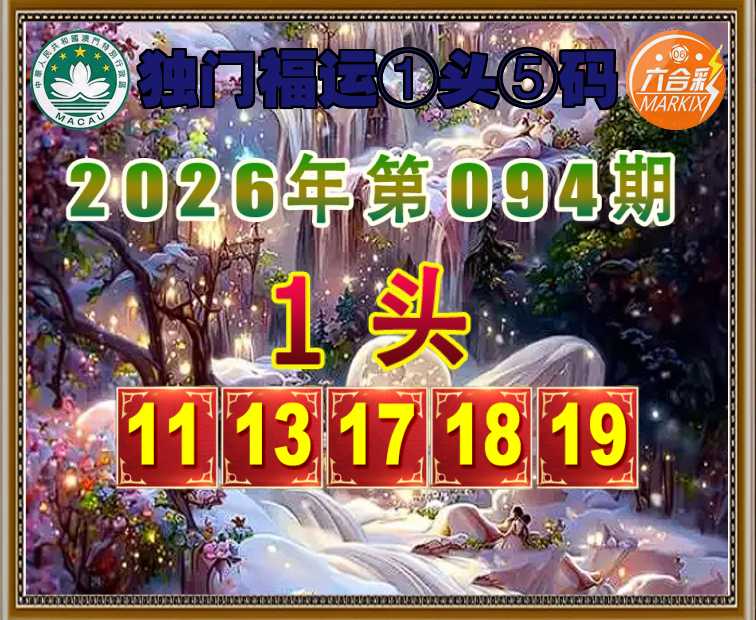 094期: 独门福运 ☘️①头⑤码☘️【1头主:11.13.17.18.19】开:17